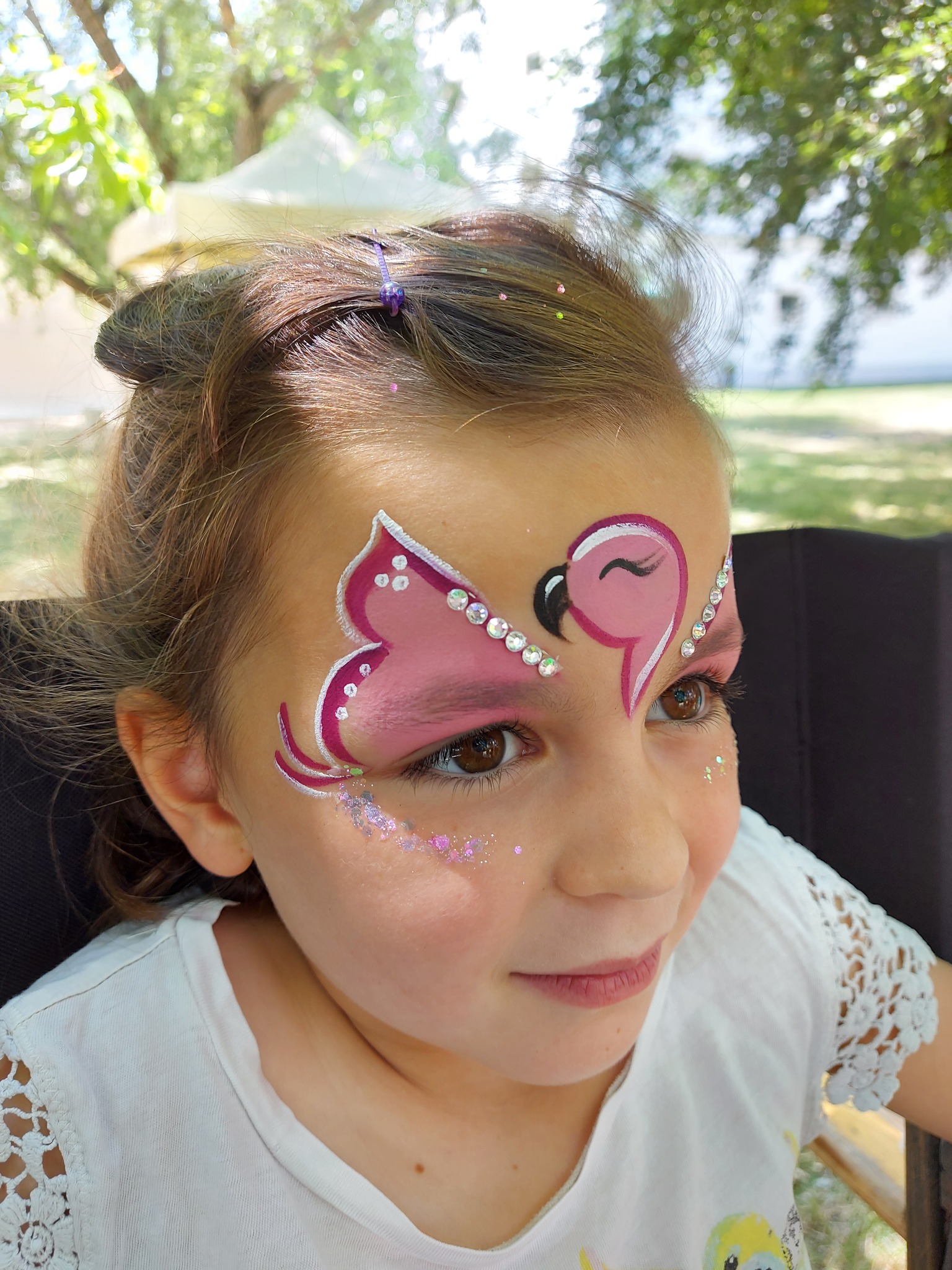 Kérhetnek tőlünk lepke, unikornis, tigris, katicabogár, kalóz vagy éppen virágtündér mintát, amire csak a vendégek szíve vágyik… Mi megfestjük!